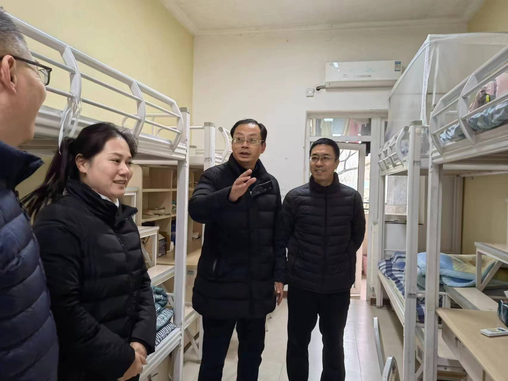 各位领导还深入门卫室、学生宿舍、食堂、心育导航中心等地进行了实地查看,重点检查了门卫管理、消防安全、食品安全、心理健康等方面的情况,并对我校在火灾防范、食品卫生等方面的管理工作提出了指导性意见。在视察学校超市时,韩校长点赞了对口帮扶云南昌宁县帮扶产品专区,同时韩校长强调,校园安全无小事,校园安全管理工作是一项长期工作、系统工程,要始终做到常抓不懈、警钟长鸣,切实把安全教育贯穿学校教育各环节、全过程,真正筑牢安全防线,要始终保持高度警惕,不断完善各项管理制度和措施,切实做好校园安全防范工作。