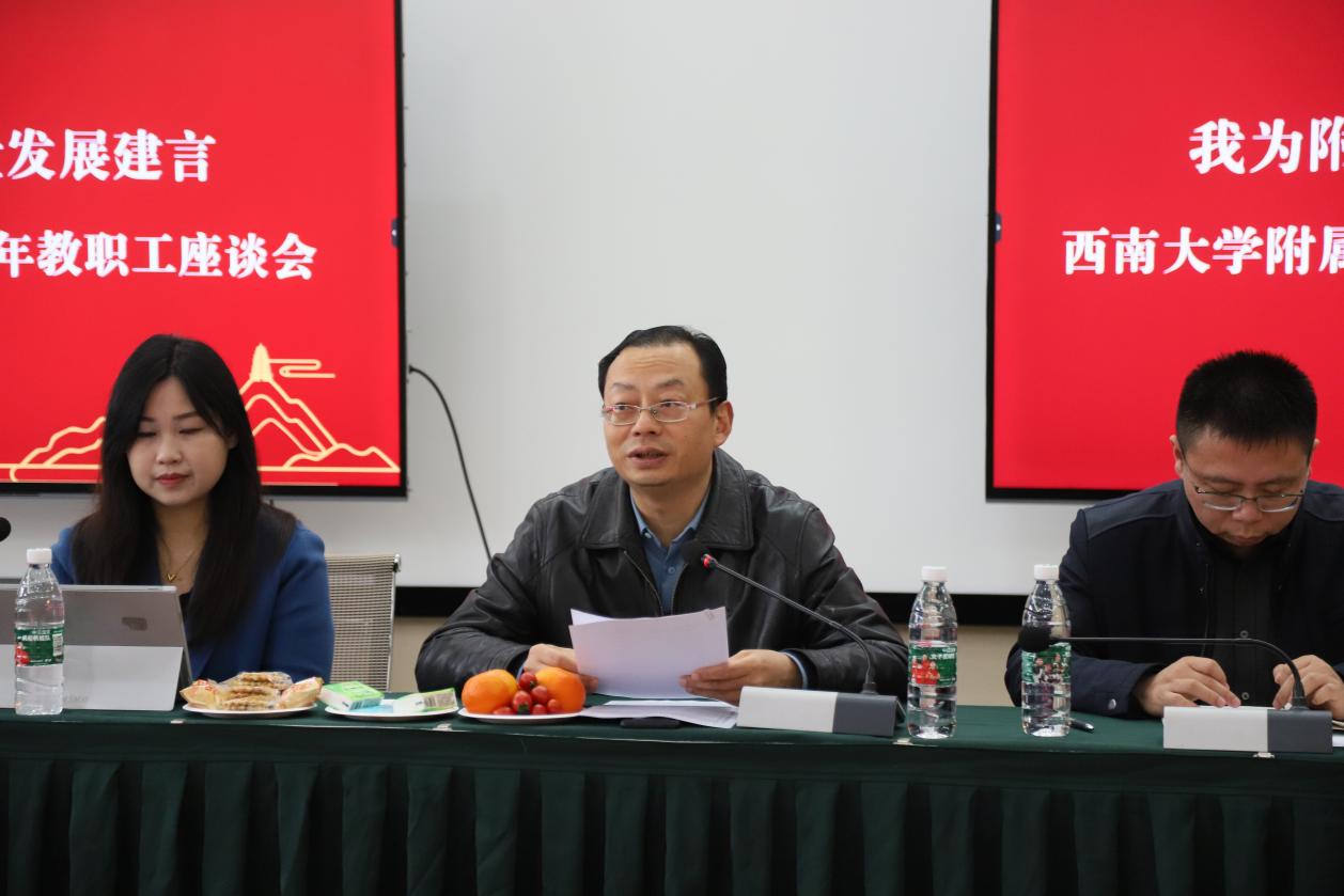 座谈会上,党委书记欧健代表附中领导班子通报了学习贯彻习近平新时代中国特色社会主义思想主题教育专题民主生活会情况。