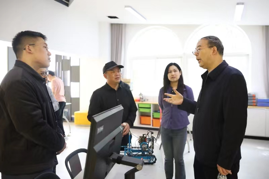 调研组一行深入我校STEAM与综合教育中心,详细了解了我校通用技术和劳动教育课程的开设情况,以及教学工具和教学场地的使用情况,还针对工程教育理念与生涯教育深度融合进行了探讨研究。专家组在综合调研后,对我校在技术教育、劳动教育、人工智能教育及综合实践活动方面的积极探索和取得的显著成果给予了高度赞扬和认可,也从课程改革、反思评价、加强创新等方面提出了宝贵建议。