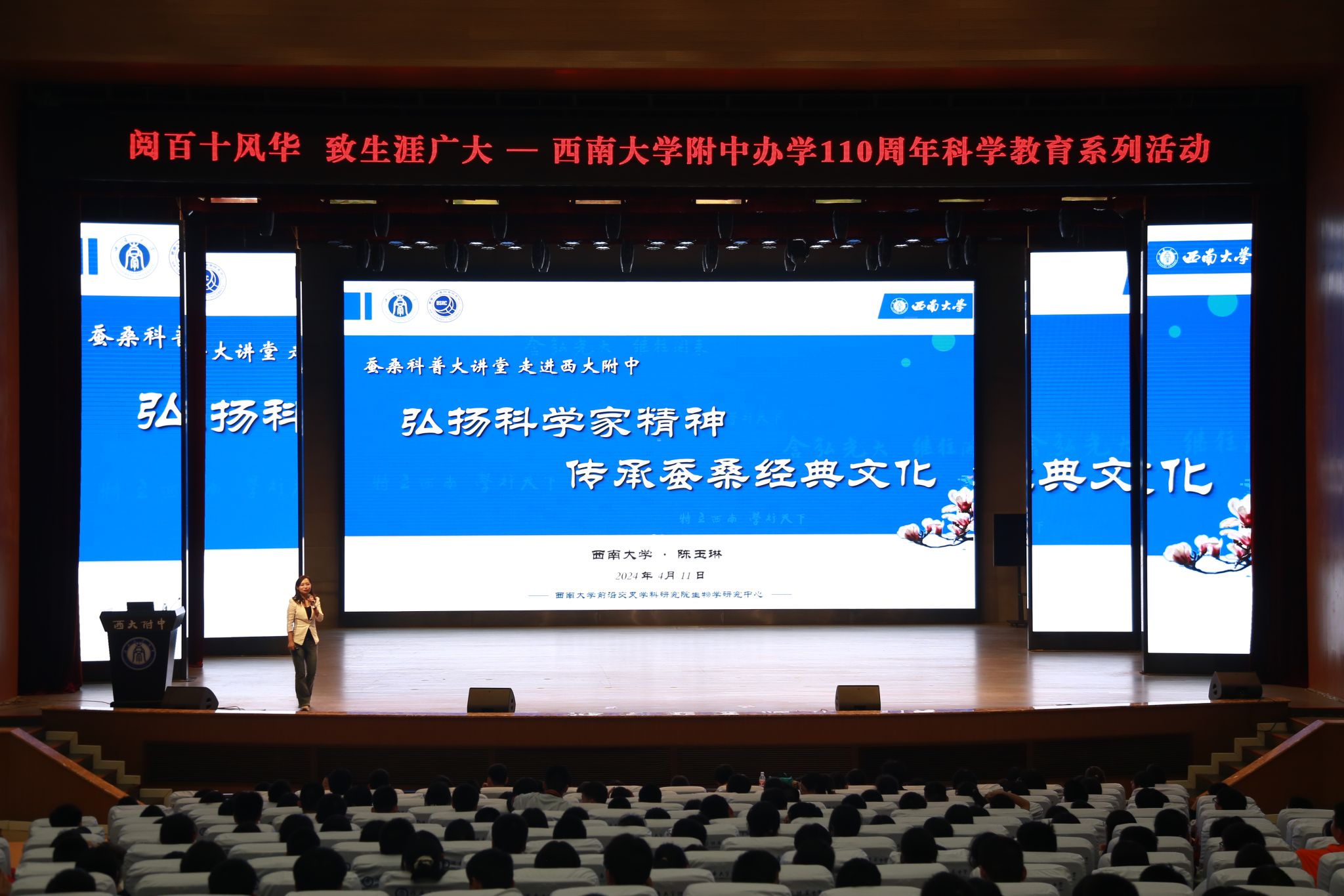 4月11日,一场以《弘扬科学家精神,传承蚕桑经典文化》为主题的科普讲座在我校立人学术报告厅热烈开讲。在PA视讯生物学研究中心办公室主任、科普负责人,重庆市劳动教育科学研究会监事长陈玉琳的精彩演讲下,学校初2026届的学生们深入了解蚕桑文化,受益匪浅。