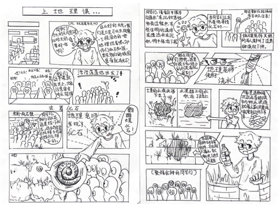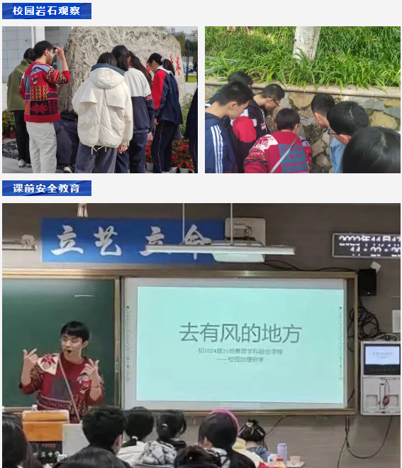 “看!原来校园里面也有化石!”;“哇!原来地下操场的建设还有这样的地理原理!”。这是来自初2024届吴邹阳同学对于“校园地理实践课”的感叹。平时日夜走过的校园,竟然有这么多地理元素;平时在地理教材上面的文字知识,在走出教室的这节课立体而生动。
