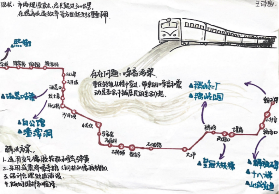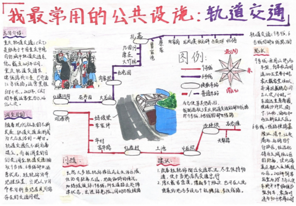 地理是一门与生活、生产实践紧密联系的应用性学科,地理不仅展示了大千世界的多样性,更对生活中的问题进行了理性思考。同学们走进生活,带着“地理眼”和“美育眼”,拿起“地理书”和“美术笔”,亲身经历或者亲自调查,以“我用的最多的公共设施”为题发现很多生活中的地理、地理中的美好。