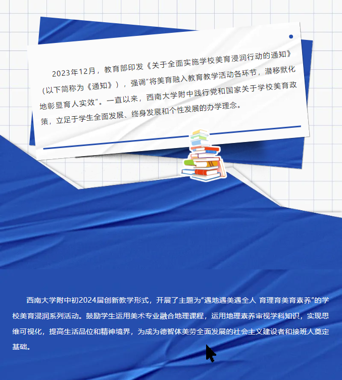 课后,初2024届的同学意犹未尽,拿起画笔,纷纷对校园实践活动进行复盘,将知识内化为素养,将美育融合于智育。