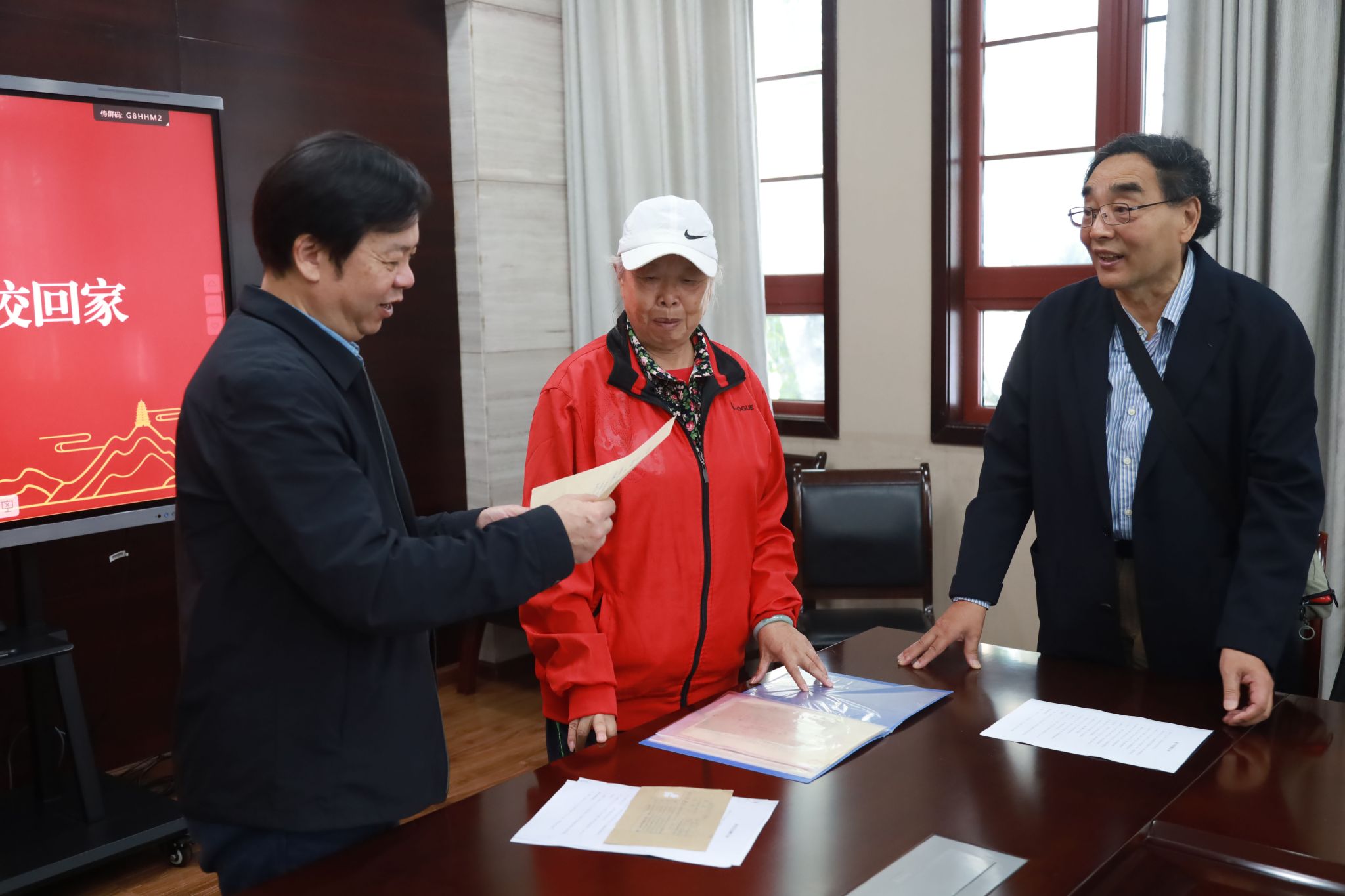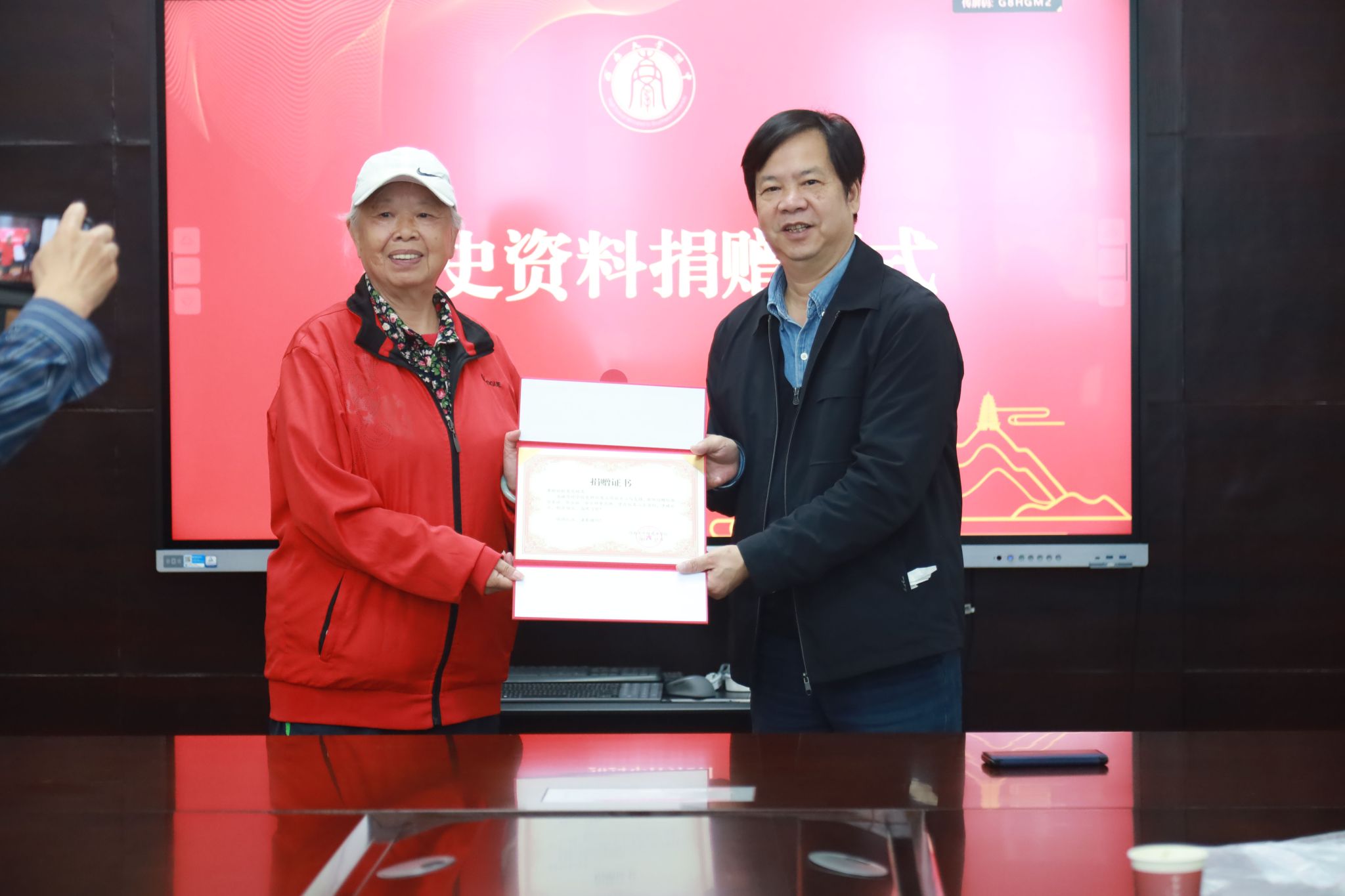 邓晓鹏会长接受捐赠,并为耿曼尼颁授捐赠证书,为席希校友颁发校友联络大使证书。邓晓鹏会长表示,校友的捐赠是对学校历史的尊重,也是对学校未来发展的支持。本次捐赠的校史资料非常珍贵,承载着耿曼尼等60年代校友青春年华、学习生涯和奋斗岁月最难忘的记忆,代表着他们对母校拳拳之心和深情厚意,具有很好的纪念意义,学校一定要收藏好、保管好、利用好;同时期待这些珍贵的资料能够激发更多校友、师生和社会各界人士对学校历史的关注和对校史文化建设的参与。