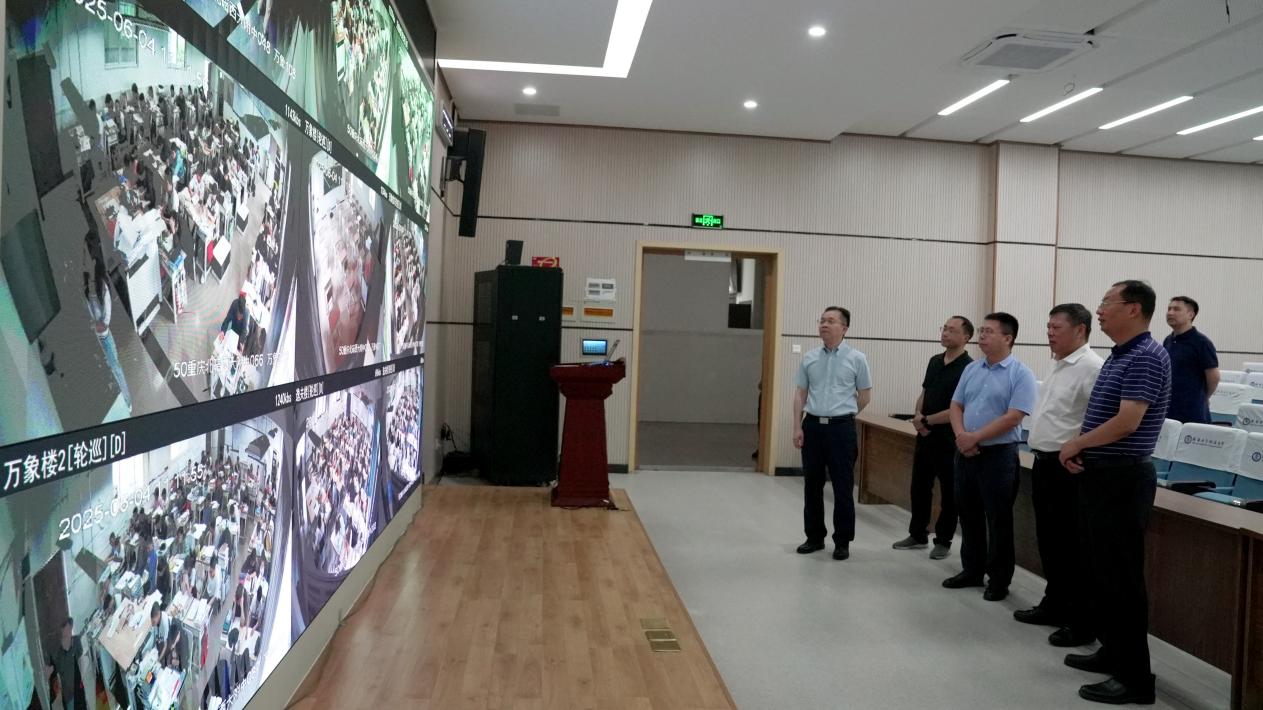 张卫国书记一行实地察看了考务办公室等工作场所,听取了学校欧健书记关于中高考备考的情况汇报,对学校“科学备考、人文关怀”的迎考策略、科学有序的备考安排和后勤保障工作表示充分肯定。