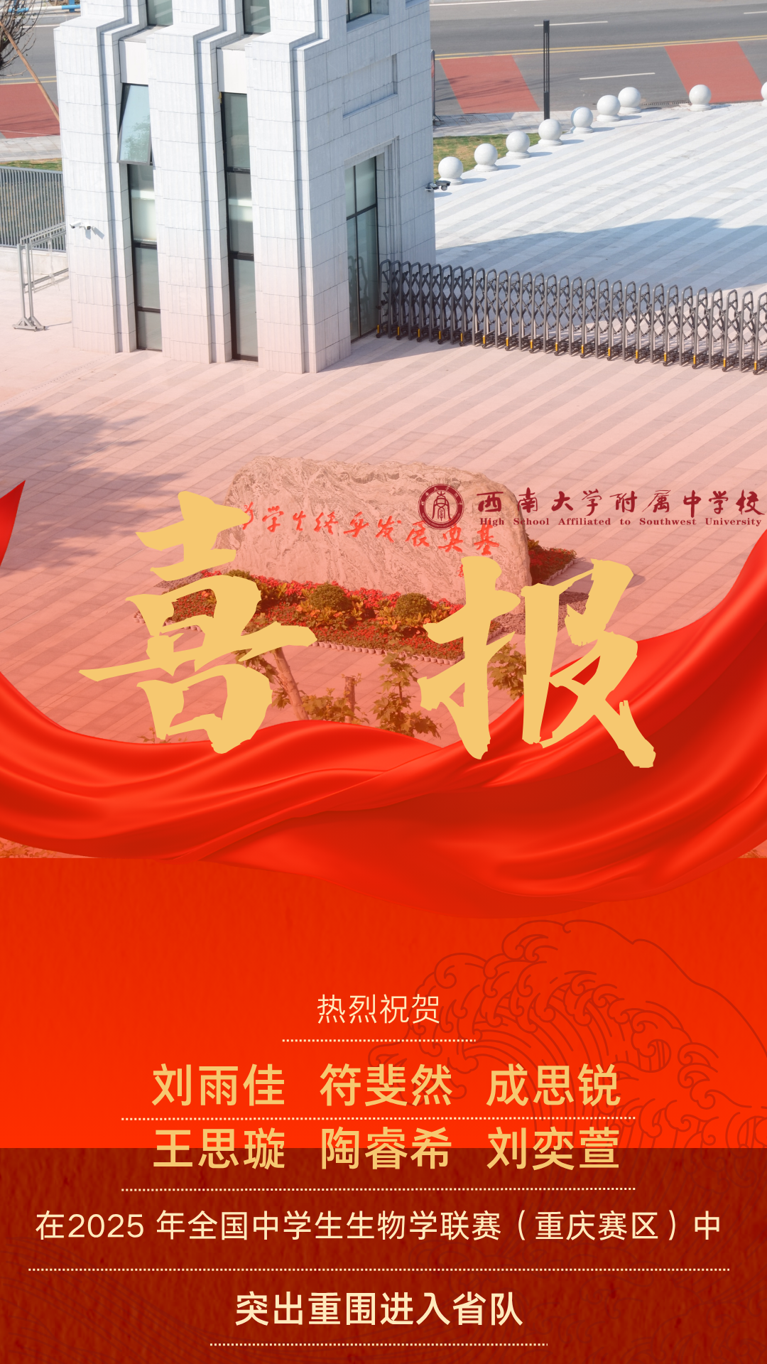 学校对入选省队的6名同学表示热烈祝贺,同时也对辛勤付出的指导教师团队表示衷心感谢。期待这些优秀的学子们在8月份的全国决赛中能够继续发扬拼搏精神,再创佳绩,为学校争光,为重庆市争光!