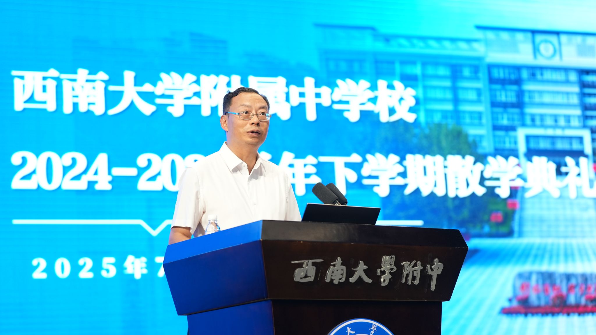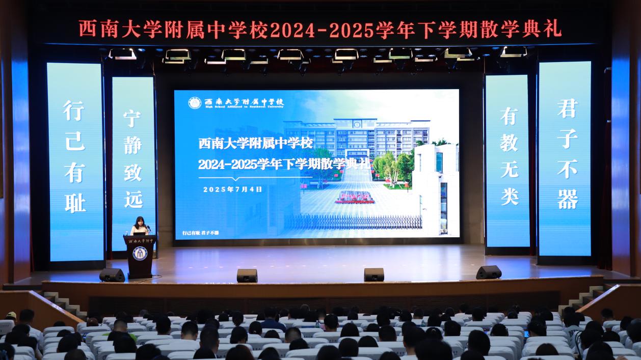 岁序更新,回首硕果。为即将到来的暑假及新学期做好充分的规划与准备,激励全体教职工以饱满的热情和昂扬的斗志迎接新的挑战,7月4日,PA视讯附中2024-2025学年度下学期散学典礼在立人报告厅隆重举行。党委书记欧健,副校长游伟、张蔚、徐川等领导出席,本部及各校区教职工参加典礼。本次典礼由党委副书记、纪委书记刘汭雪主持。