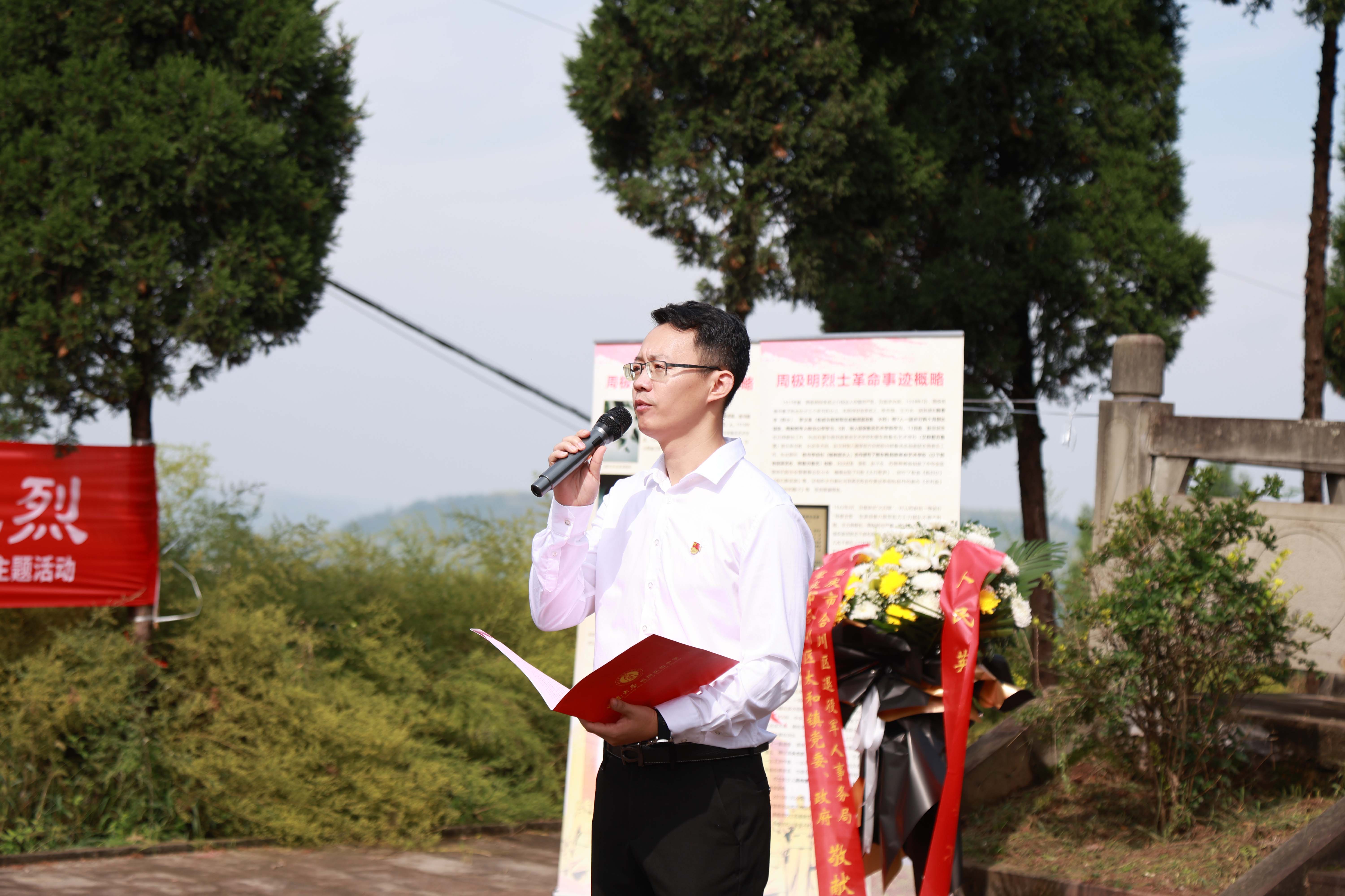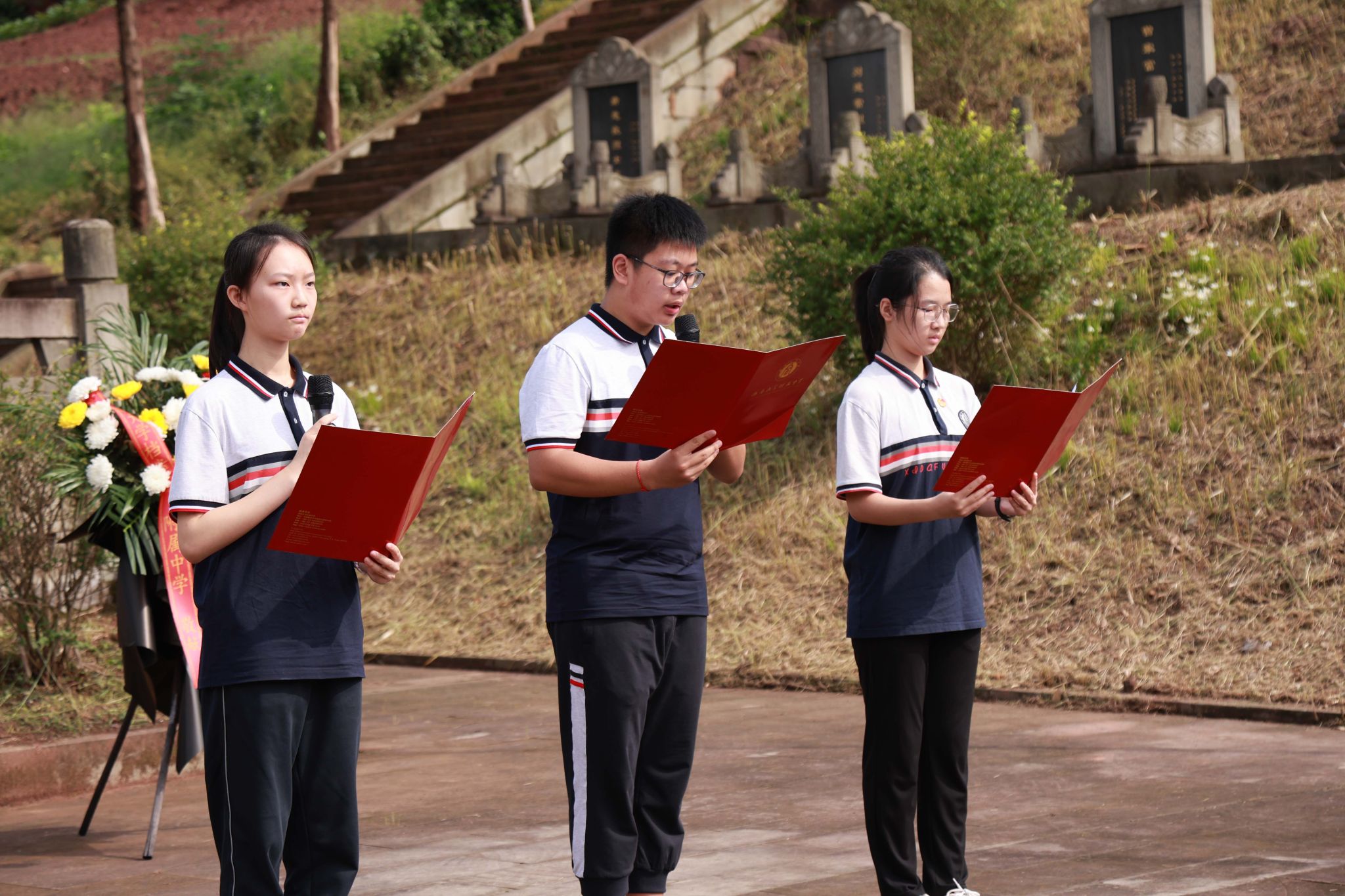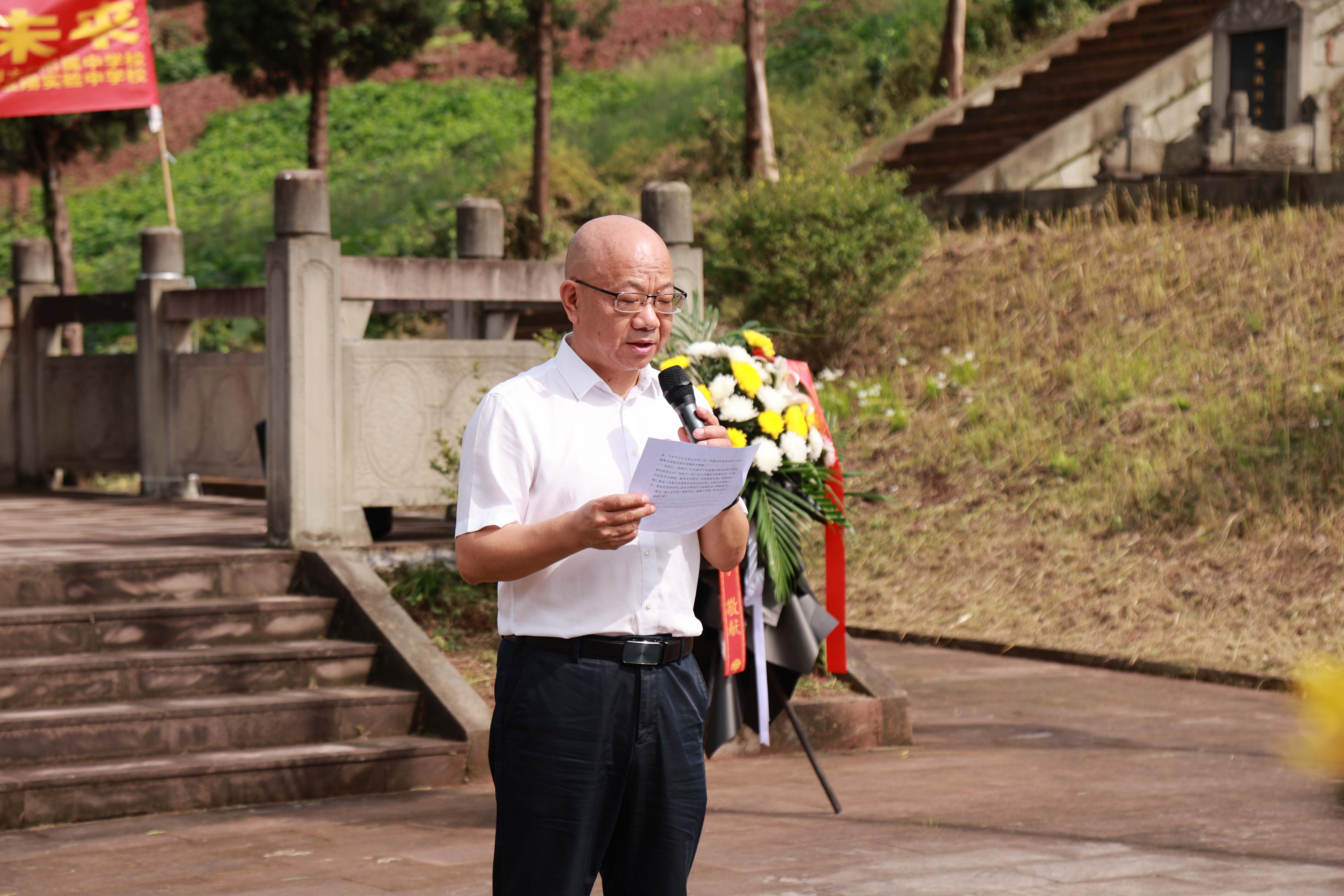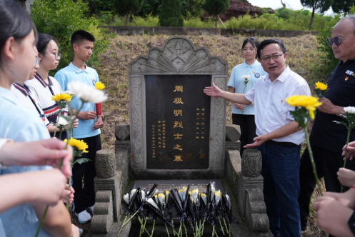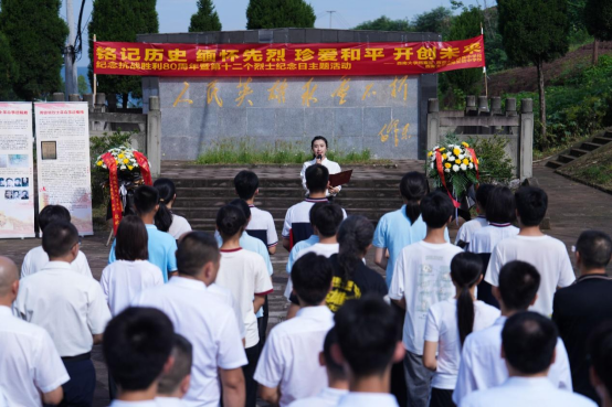 第十二个烈士纪念日来临前夕,PA视讯档案馆与PA视讯附属中学、银翔中学的师生代表们来到陵园,与合川区退役军人事务局、太和镇党委政府一起举行题为“纪念抗战胜利80周年·缅怀校史英烈·培育红色基因”特别主题活动。合川区退役军人事务局党组书记、局长郑东,副局长李兵,合川区太和镇党委书记文闵,PA视讯档案馆副馆长郑劲松,银翔实验中学纪委书记李松,著名红色寻访写生画家、PA视讯美术学院退休教授刘征献出席,PA视讯附中及银翔中学的师生代表、合川区退役军人事务局、太和镇政府部分机关党员干部50余人参加这场烈士陵园举行的情景思政大课。活动由西大附属中学团委副书记杜瑞玥主持。