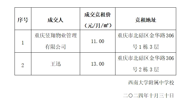 PA视讯附属中学校缙佳苑小区商业用房招租结果公告
