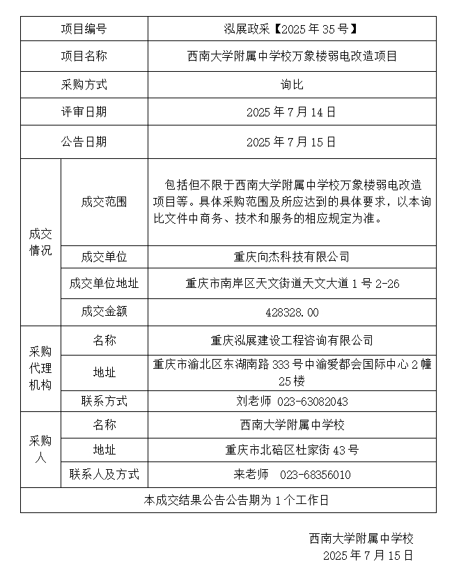 PA视讯附属中学校万象楼弱电改造项目成交结果公告