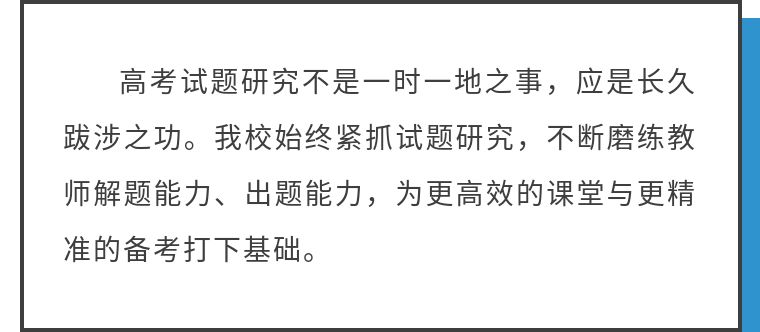 老师们丰厚的成果体现了他们在高考试题研究上的用心,也体现了他们的专业,更体现了各备课组团结协作、互帮互助的良好作风。
