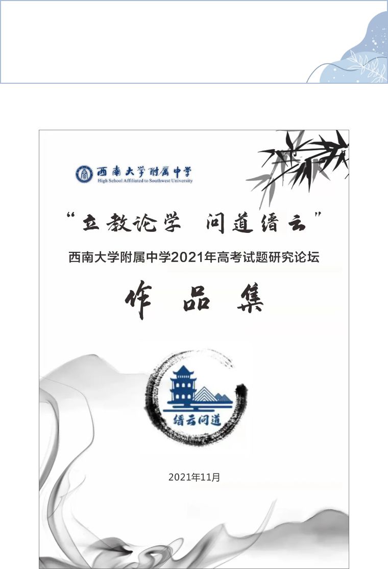 论坛展示交流结束后,高一年级组将老师们的高考试题研究成果集结成册,并发放到各位老师手中。未来,相信附中还将涌现无数的试题研究成果,期待“立教论学 问道缙云”论坛不断延续,助附中人乘风破浪,勇立潮头!