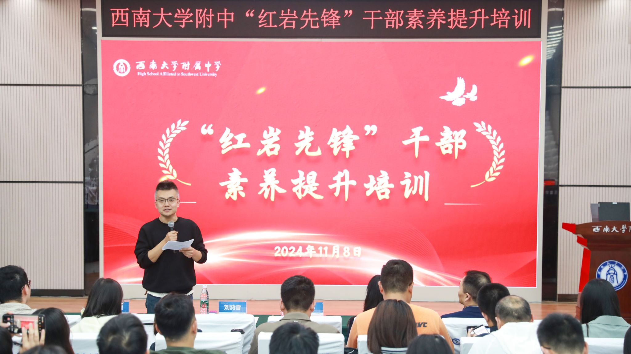 为深入学习贯彻党的二十届三中全会精神,打造新时代“红岩先锋”变革型组织,在中国式现代化的宏大场景中大力推进干部队伍现代化,推动学校高质量发展,学校党委于2024年11月8日开展第二期“红岩先锋”干部素养提升专题培训(第二课)。
