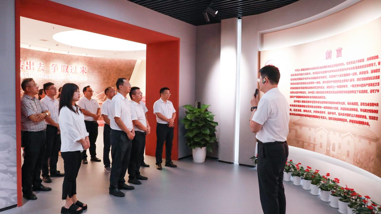 参观过程中,中心组成员仔细观看展陈,认真听取讲解,不时驻足交流讨论。一件件饱经沧桑的文物、一幅幅震撼人心的历史图片,生动再现了中共中央南方局推动建立世界反法西斯统一战线的光辉历程。