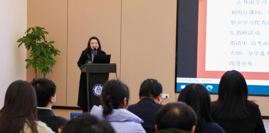 曹玲老师作学员代表发言。她分享了自己作为新教师职业生涯初期的成长经历,并表达了对“领航计划”的感激与期待。她渴望通过这次研修提升自己的教学与命题水平,更好地应对新高考改革的挑战,成为一名会教学、会命题、会育人的、更全面的六边形战士!