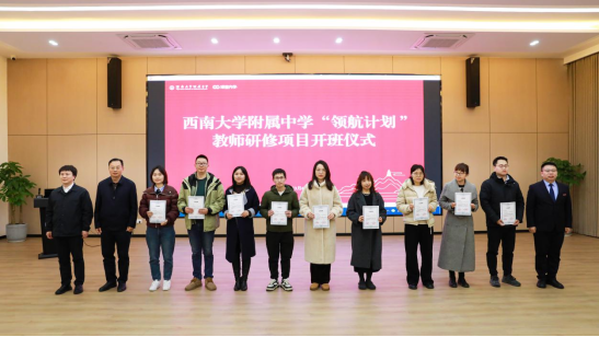 学校领导为参加“领航计划”的学员代表们颁发“入训证书”。每一位学校都获得了一份证书,证书是对他们入选的鼓励,也是对他们未来投入培训的期待。