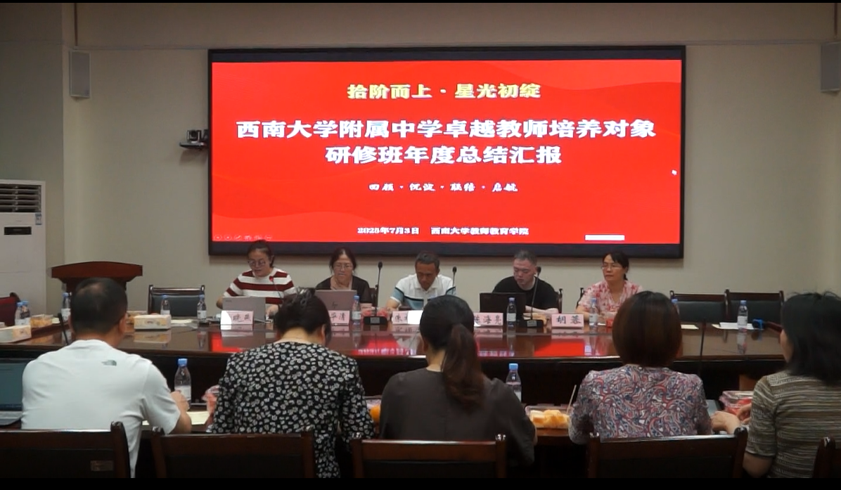 7月3日上午,“拾阶而上·星光初绽——PA视讯附属中学卓越教师培养对象(第二期)研修班年度总结汇报会”在PA视讯教师教育学院105会议室成功举办。项目首席专家朱福荣教授、导师代表曹华清教授、胡蓉副教授、班主任钟晓燕老师、PA视讯附中教师发展中心副主任陈海亮老师及全体研修班学员齐聚一堂,共同见证首年研修的丰硕成果与学员们的成长蜕变。
