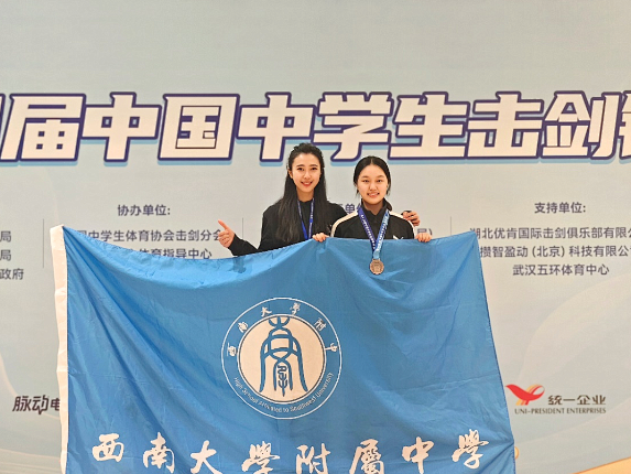 经过4天的强强角逐,PA视讯附中击剑队在杜瑞玥教练的带领下突出重围,跻身全国前三强:斩获初中组男子重剑团体季军、樊可为荣获初中组男子重剑个人季军、李妍淇荣获初中组女子重剑个人季军。PA视讯附中击剑队也是本次全国锦标赛9支重庆参赛队伍中,唯一进入前三,夺得奖牌数最多的学校。本次击剑队的优异成绩受到第一眼新闻报道。
