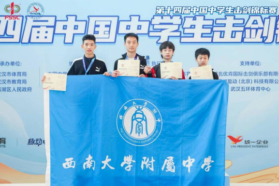 樊可为、施然译、张羽泽、代宏旭获初中组男子重剑团体季军