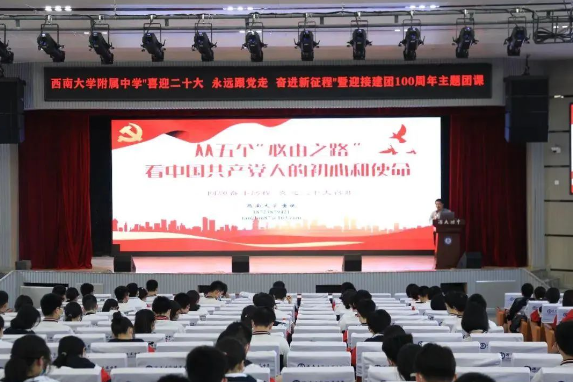 在中国共产主义青年团成立一百周年之际,为贯彻落实习近平总书记“抓好青少年学习教育,让红色基因、革命薪火代代相传”的重要指示,我校团委开展“喜迎二十大,永远跟党走,奋进新征程”系列主题团课,使当代青年学子们延续五四精神,追随党之思想,成就不朽之伟业。