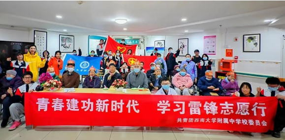 西大附中团委组织少先队员、共青团员代表前往PA视讯康养院,开展了以“青春建功新时代,学习雷锋志愿行”为主题的实践活动,把社会道德“课堂搬到敬老院,以“行走的思政课”让学生在尊老敬老的社会实践中感受老一辈教育工作者的艰辛历程和不折不挠的奋斗精神,在感恩教育中树立社会责任感和使命担当。