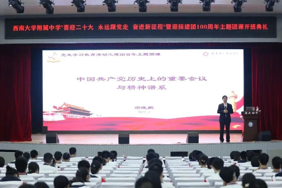 利用朝会这一主要宣传阵地,邀请到PA视讯马克思主义学院唐斌教授带来《 青春扎根祖国,合力圆梦中华,喜迎中国共产党第二十次全国代表大会胜利召开》的主题发言,带领同学们温习百年党史,深入学习中国共产党第二十次全国代表大会精神,汲取奋进力量。