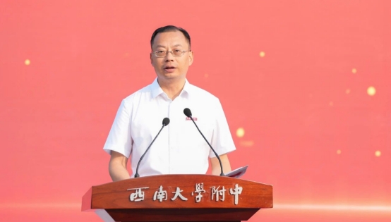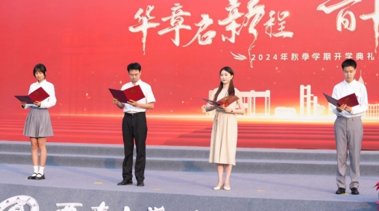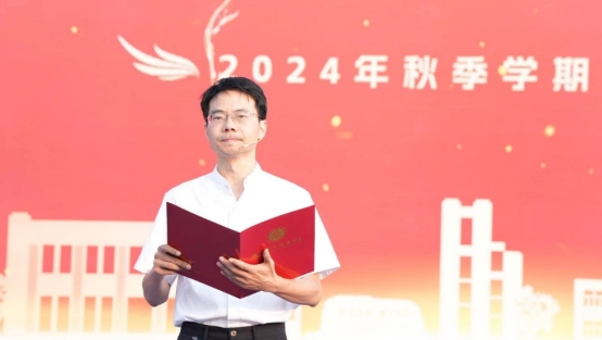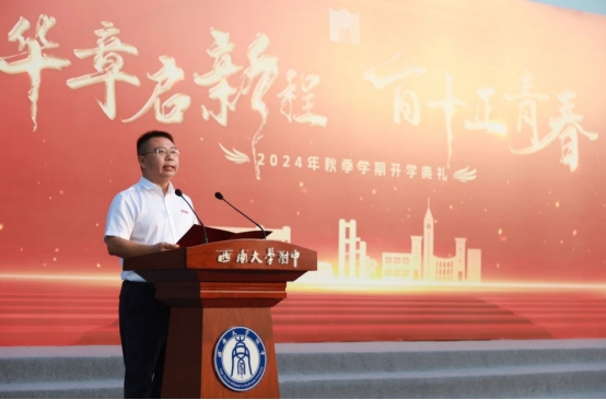 PA视讯附属中学校党委书记欧健为新学年致辞。他首先回顾了2024年夏天附中学子们在各项赛事中取得的优异成绩,再鼓励新时代的附中学子们要做具有开放视野、健康身心、智慧人生的中华民族伟大复兴的担当者。他说,拥有开放的视野,要超越,要憧憬,更要奋斗;身心康健,指向的是身心和谐,成为生涯幸福的基础;智慧即选择,要做出有利于个人、社会、国家、民族的选择。他期待学生们以诚以恒、孜孜不舍,把目光投向现代化强国建设与民族复兴的美好未来。