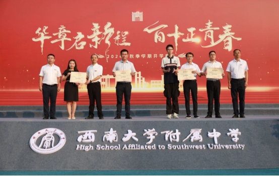 校领导们为高2024届物理竞赛团队、科技创新竞赛师生团队、PA视讯附中团委、巫山支教团队颁发了“为校争光奖”。
