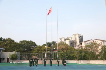 庄严肃穆的国歌在校园中响起,师生们仰望着五星红旗高高升起,迎风飘扬,自豪之情油然而生。随后,蓝色校旗冉冉上升,悠扬的校歌回荡在耳边,师生心中印下永恒的附中记忆。缙云苍苍,嘉陵泱泱,此时此刻,率真至纯。蓝天下的这一刻,师生们并肩站在一起,都是有着“中国梦”“附中梦”的人。