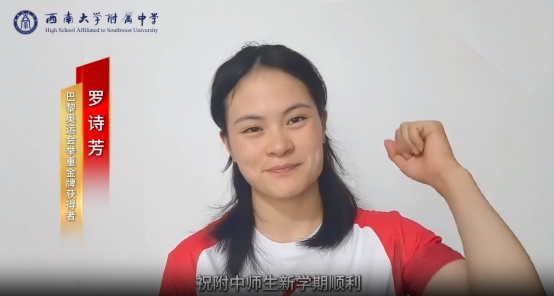 本次开学典礼还有一个特别的环节:奥运会举重女子59公斤级比赛的金牌得主罗诗芳学姐送祝福。在不久前结束的巴黎奥运会上,中国健儿奋力拼搏,成绩斐然。就读于PA视讯体育学院2021级运动训练专业的罗诗芳学姐,以非凡实力赢得了世界瞩目。新学年到来之际,她为附中学子送上了诚挚的祝福,鼓励附中学子不畏艰险,超越自我,勇敢攀登。