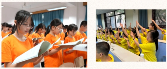 学生和教师们右手握拳,高举过肩,进行了庄严的宣誓,严肃激励的誓言响彻礼堂,这充满神圣感和仪式感的一刻,让我们明白:我们渴望成为更好的附中人。