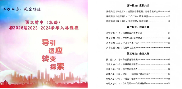 沿着这一思路,年级为全体师生和家长编制了入格课程手册,该手册是一份指南,更是入格教育从活动化走向系统化、课程化的标志。在“关系”与“生涯”两个焦点之下,一系列教育活动,有了清晰的课程逻辑,具备了更大的育人价值。