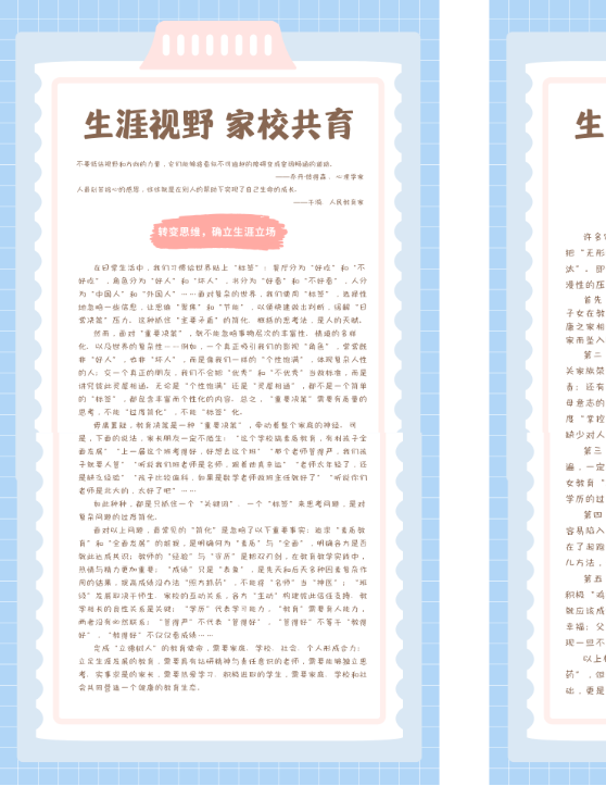 “家校共读”板块分为学生篇、教师篇和家长篇,旨在打破师生、家长之间的界限,校准彼此的育人观和教育观。通过这一模块,每个参与方都能更加明确自己在构建良好关系中的角色和责任。