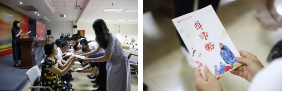 后浪已来,各位年轻的老师手持拜师帖,排成整齐的队列依次上台,深鞠一躬,神色庄重,将拜师帖双手递到了师父面前。弟子们满是期待,也有些许的紧张;而对面的师父们也是满眼欣喜,对后辈寄予热望。