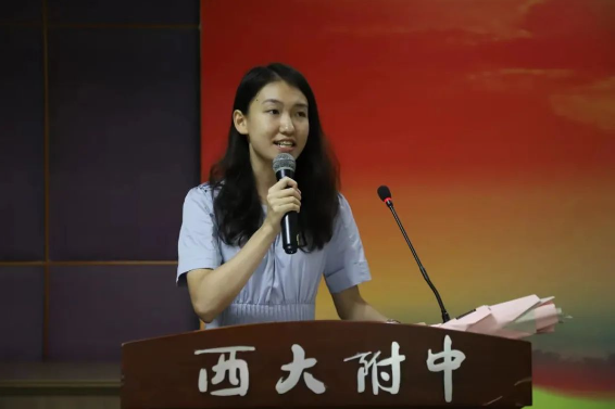 从拜师六礼中,我们切身感受到了中华优秀传统文化的博大精深,也看到附中一代代老师们薪火相传的师魂。师父代表、语文组张爱明老师分享了自己与冯顺林老师关于“春风”含义的探讨,他说,师道传承是双向的奔赴,正如《学记》所言,“善待问者如撞钟,叩之以小者则小鸣,叩之以大者则大鸣”。