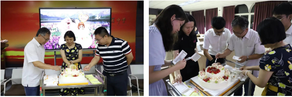 张勇副校长、张爱明老师、李越老师一起切开了寄托着附中的师魂传承的蛋糕,各位老师共享拜师礼的喜悦,共同珍藏这个教师节的回忆!