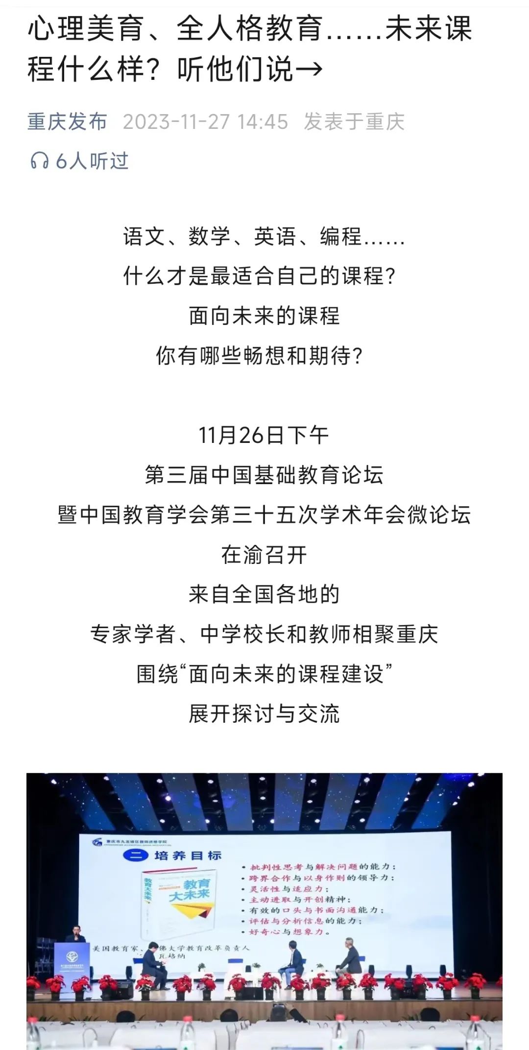 大咖云集“传经送宝”让面向未来的教育真正发生!第三届中国基础教育论坛暨中国教育学会第三十五次学术年会 微论坛“面向未来的课程建设”成功举办