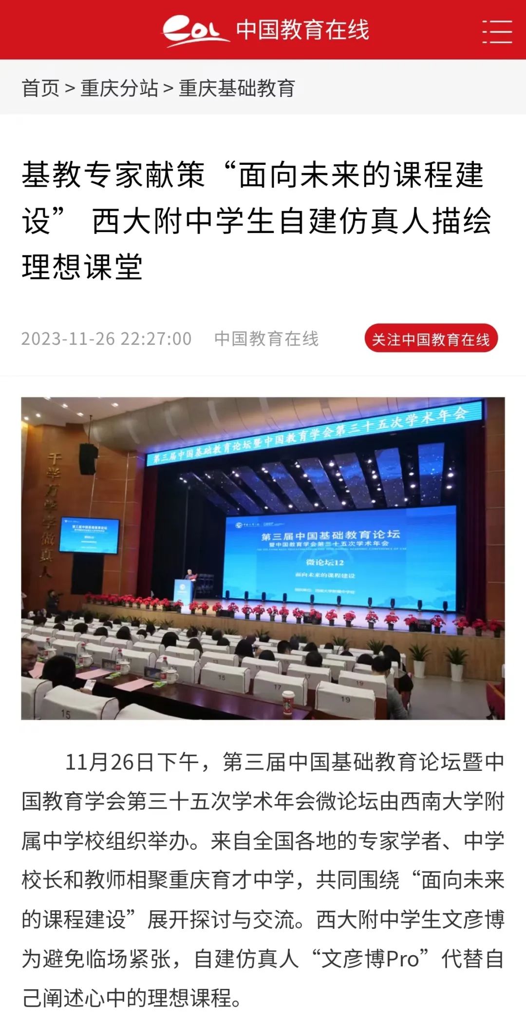 基教专家献策“面向未来的课程建设” 西大附中学生自建仿真人描绘理想课堂