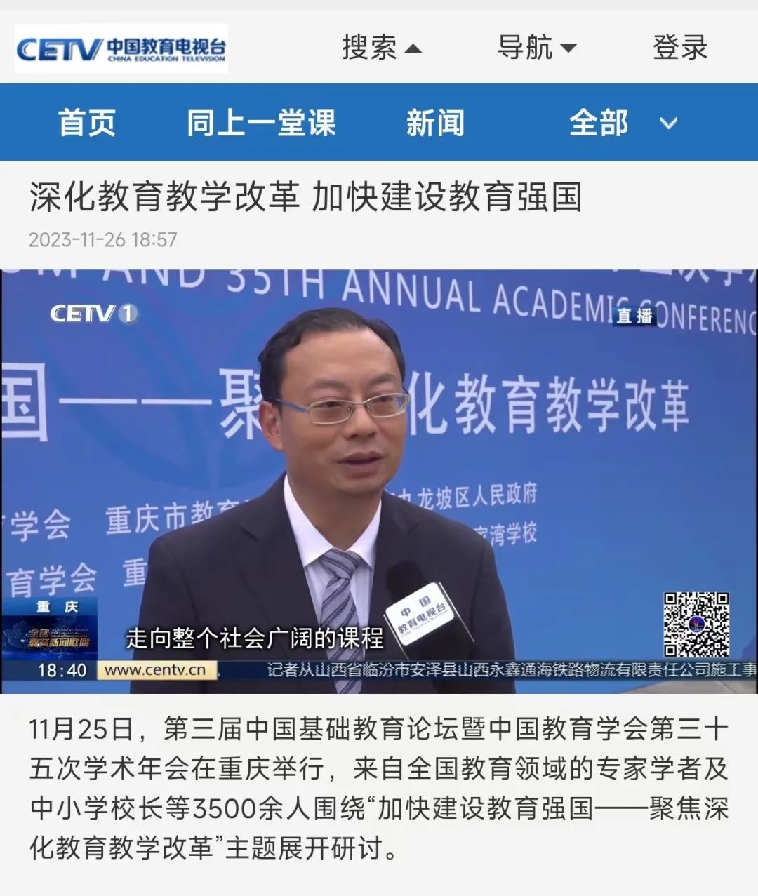 11月25日,第三届中国基础教育论坛暨中国教育学会第三十五次学术年会在重庆举行,来自全国教育领域的专家学者及中小学校长等3500余人围绕“加快建设教育强国——聚焦深化教育教学改革”主题展开研讨。