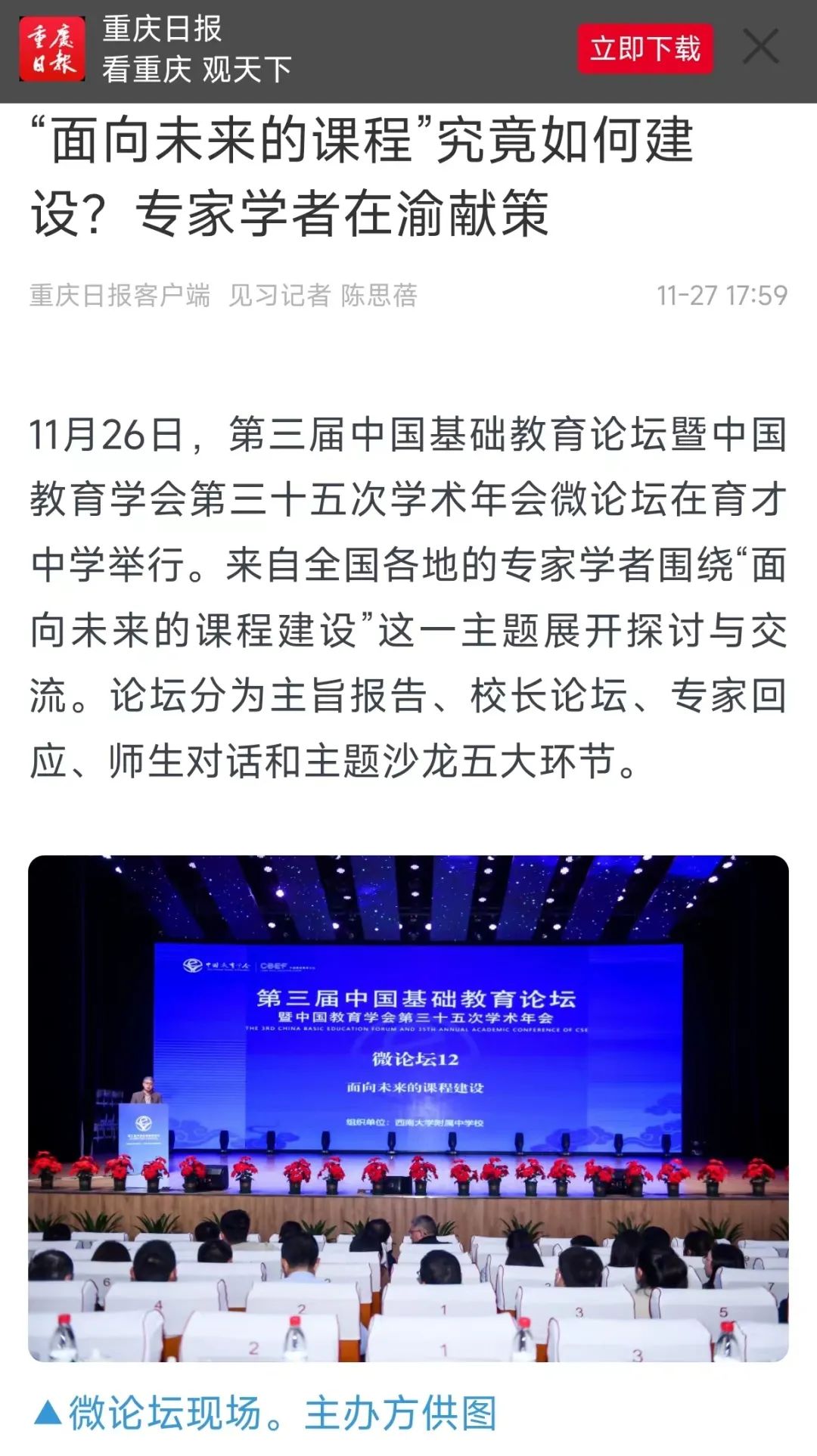 “让教育家精神活起来 让学校治理变革动起来”——第三届中国基础教育论坛暨中国教育学会第三十五次学术年会·校长论坛在重庆召开