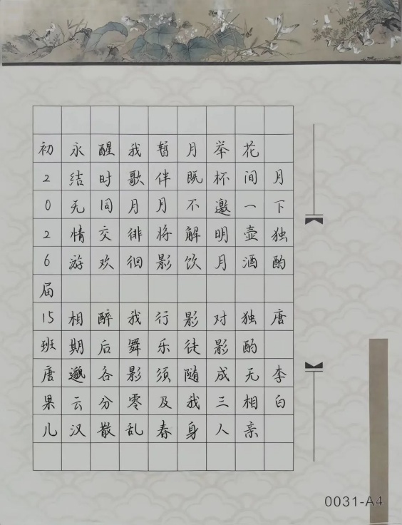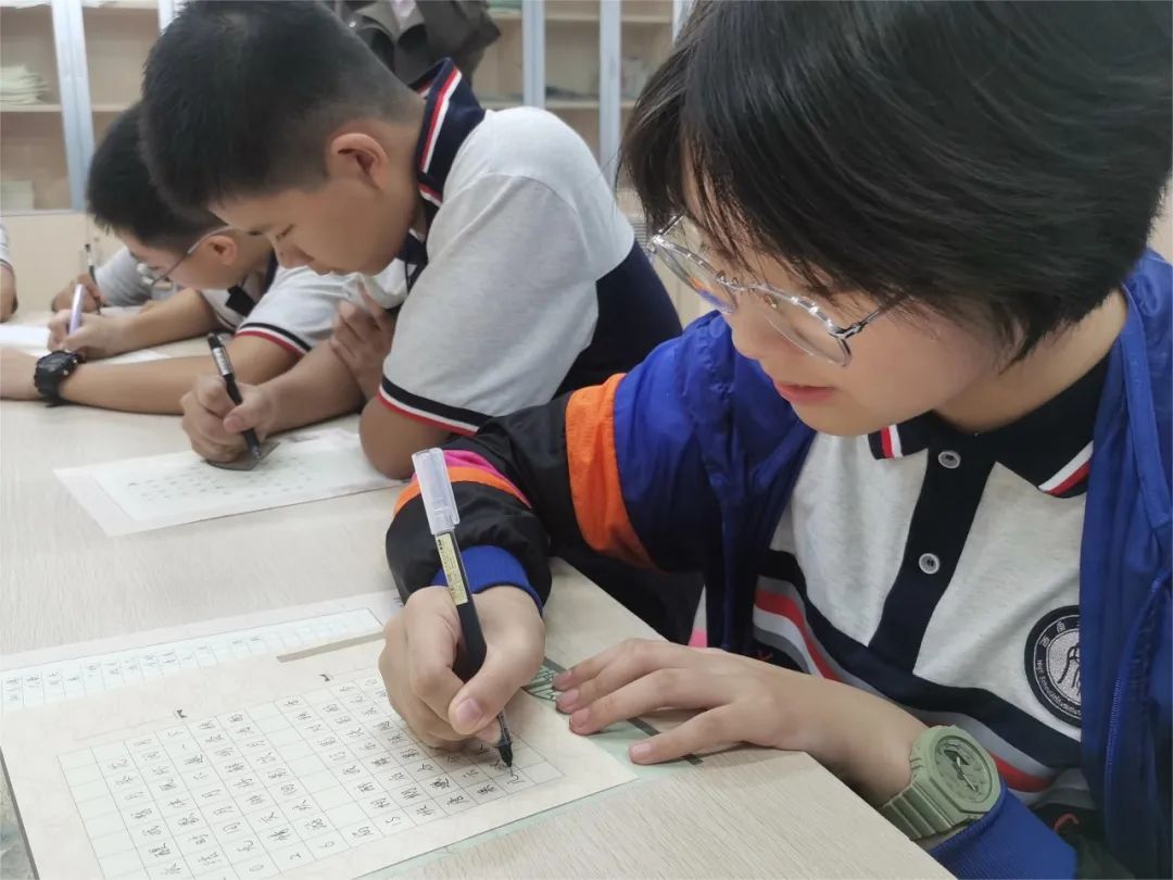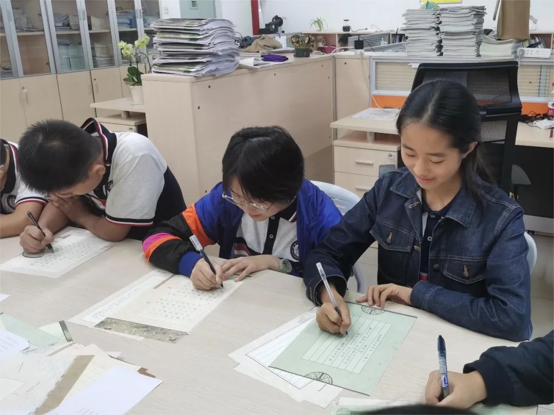 在活动现场,学生们积极参与,书法作品形式多样。在笔墨流转间,学生品读诗句,以诗言志。李老师也欣喜地发现,学生们的作品不仅表达了对中秋节团圆和欢度国庆节的喜悦,更展现出了他们对诗词书法的热爱和对传统文化的深刻领悟。