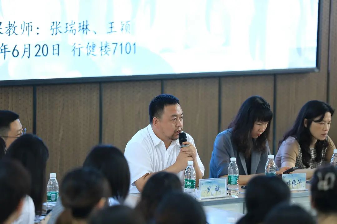 罗键老师高屋建瓴,从课堂、课程、课题三个方面对本节课进行点评。罗老师认为,两位老师在课堂上关注师生交流,引发师生讨论;板书考虑学科特质,学科教学十分有味,但其设计还有进步空间。又从格致楼的来历阐释了学科划分和跨学科教学的渊源,强调跨学科是还原而非创新,指导老师们从不同学科、不同学段的不同要求探究生地合堂的意义。指出东区注重学科拓展和交互,有利于校本课程和地方课程建设,开发特色课程。最后提出老师们应注重将教研活动和课题研究相结合,推进课题开展。