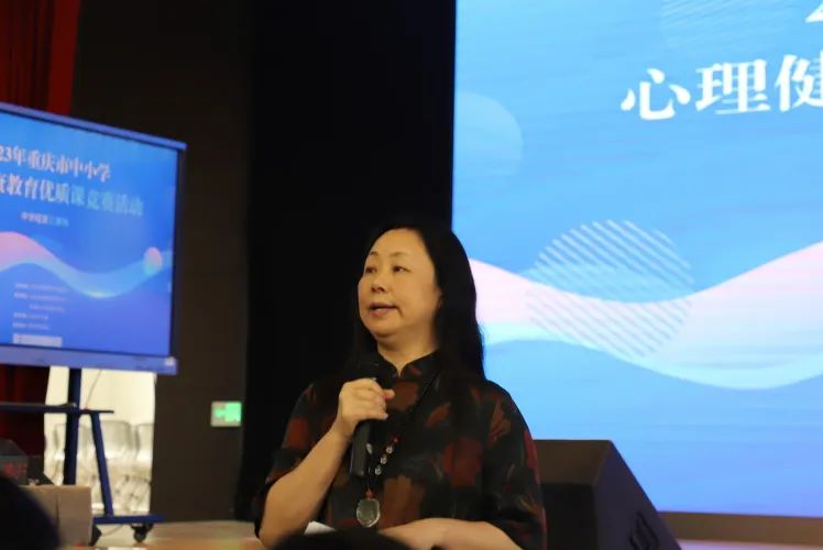 重庆市教育科学研究院德育研究所副所长杨昌弋讲话,并宣布竞赛活动开幕。杨所长在讲话中指出,本次竞赛课程是老师们风采的展示,更是重庆市心理健康教育在新时代、新发展中的重要尝试,专兼职心理教师们要更加重视心理健康教育的系统性和规范性。同时,也对参赛选手提出了期待,鼓励选手们以课堂为主阵地,激活孩子对美好生活的向往。