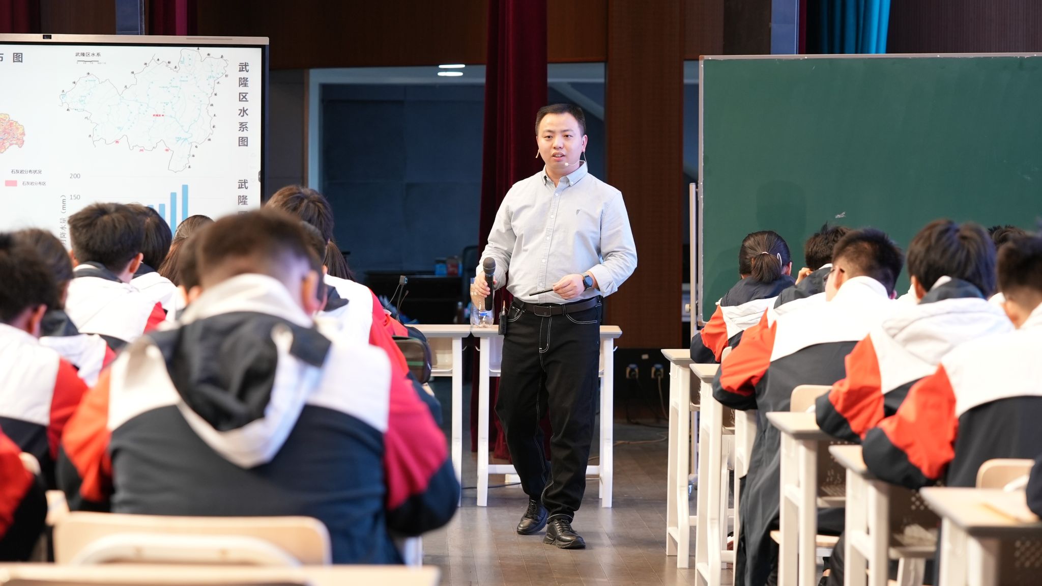 在立人报告厅分会场,PA视讯附中缪羽老师首先登场,精心策划并呈现了一堂别开生面的《喀斯特地貌》课程。该课例匠心独运,巧妙地将武隆地区的自然风光与地质奇观融入教学内容之中,体现了“德智体美劳”五育并举的教育理念。在缪老师的引领下,学生们仿佛踏上了一场奇妙的旅程,深入探索并体验了喀斯特地貌中“石与水的交响”,感受大自然的无限魅力。