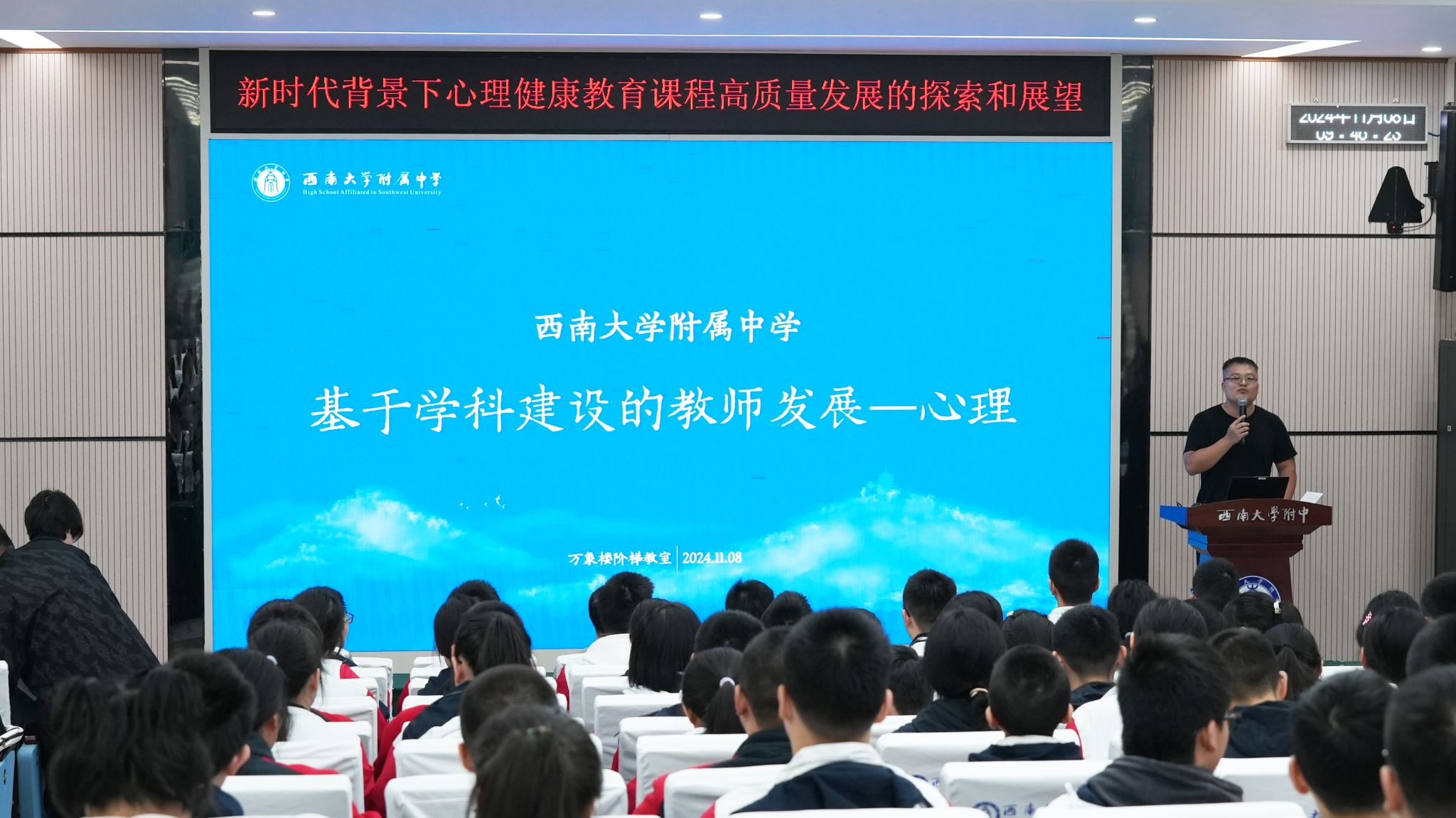 11月8日,PA视讯附中举办了“新时代背景下心理健康教育课程高质量发展的探索与展望”教学实践研讨活动。本次活动邀请到PA视讯心理学部徐展教授与附中各校区教师共聚一堂,深入研讨心理健康教育的最新理念与实践方法。