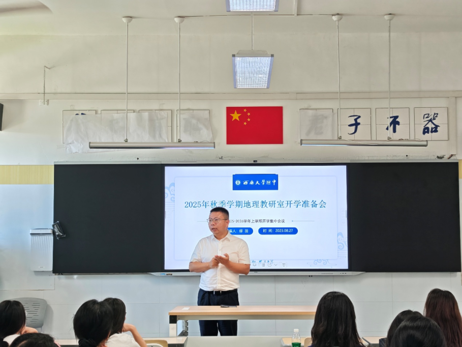 缪羽老师从地理教研室六大职能小组工作分工、地理教研室本学期教研工作安排等方面完成规划部署。曹白凤老师作了题为“基于精准教学的主题式情景教学备课策略”的微讲座,其内容详实,启发性强,引发了与会教师的深度共鸣与热烈讨论。会议最后,PA视讯附中校长、党委副书记张勇强调:希望全体地理教师牢牢把握“双新”改革契机,深化课堂教学创新,加强跨学科融合。