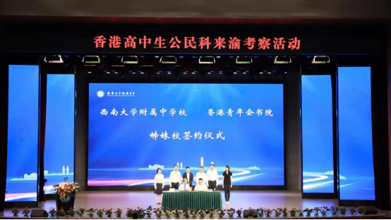 香港特区政府教育局推出公民科课程,在2023年上半年启动公民科内地考察活动,组织香港高中生来内地考察,希望香港高中学生通过体验式学习,加深对中华文化的深入了解,加强对国家成就的认知。本次来渝考察选择我校作为举办启动仪式及考察交流学校,充分彰显了学校的办学实力。本次港渝两地师生交流活动更是吸引了权威媒体关注,受到广泛宣传报道。