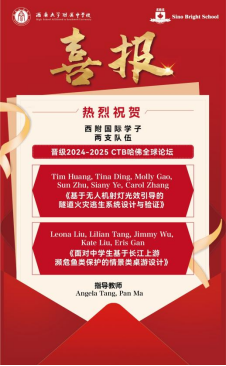 参赛师生们争分夺秒、全力备战,从文献调研到实验验证、从方案优化到论文撰写、从模拟答辩到展示汇报,一步步稳扎稳打,收获硕果。此次斩获哈佛全球论坛的2支队伍,在环境与可持续发展和科技与工程创新课题中别出心裁、见解独到。他们将长江上游濒危鱼类融入进趣味游戏,提倡生态关怀,或从无人机射灯光效中汲取隧道火灾逃生的方案,践行生活智慧,赢得了专业评委和其他参赛小队的肯定与认可,激荡起创新与青春的交响乐。