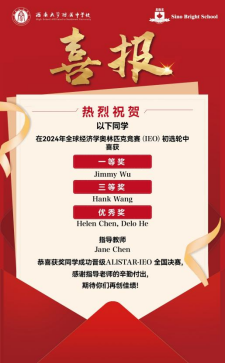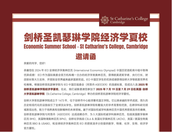 在2024年12月的IEO全球经济学竞赛中,西附国际学子表现优异,斩获一等奖,还收到了剑桥大学圣凯瑟琳学院经济学夏校的邀请,将深度体验顶级学府的教育方式,见证经济学科的前沿发展,了解经济学的专业学习。此次全球经济学竞赛的重大突破,离不开国际课程中心完善的竞赛培养体系与师生的同心合力。学生们走出舒适圈,解锁新领域,在经济学科老师的细致讲解下,探索了宏观经济学与微观经济学,尝试像经济学家一样思考与分析,构建经济学的知识框架。指导老师凭借系统的学科知识和深厚的专业素养,潜心研究竞赛考题,精心指导学生备赛,让学生享受学习的乐趣、挑战竞赛的未知。