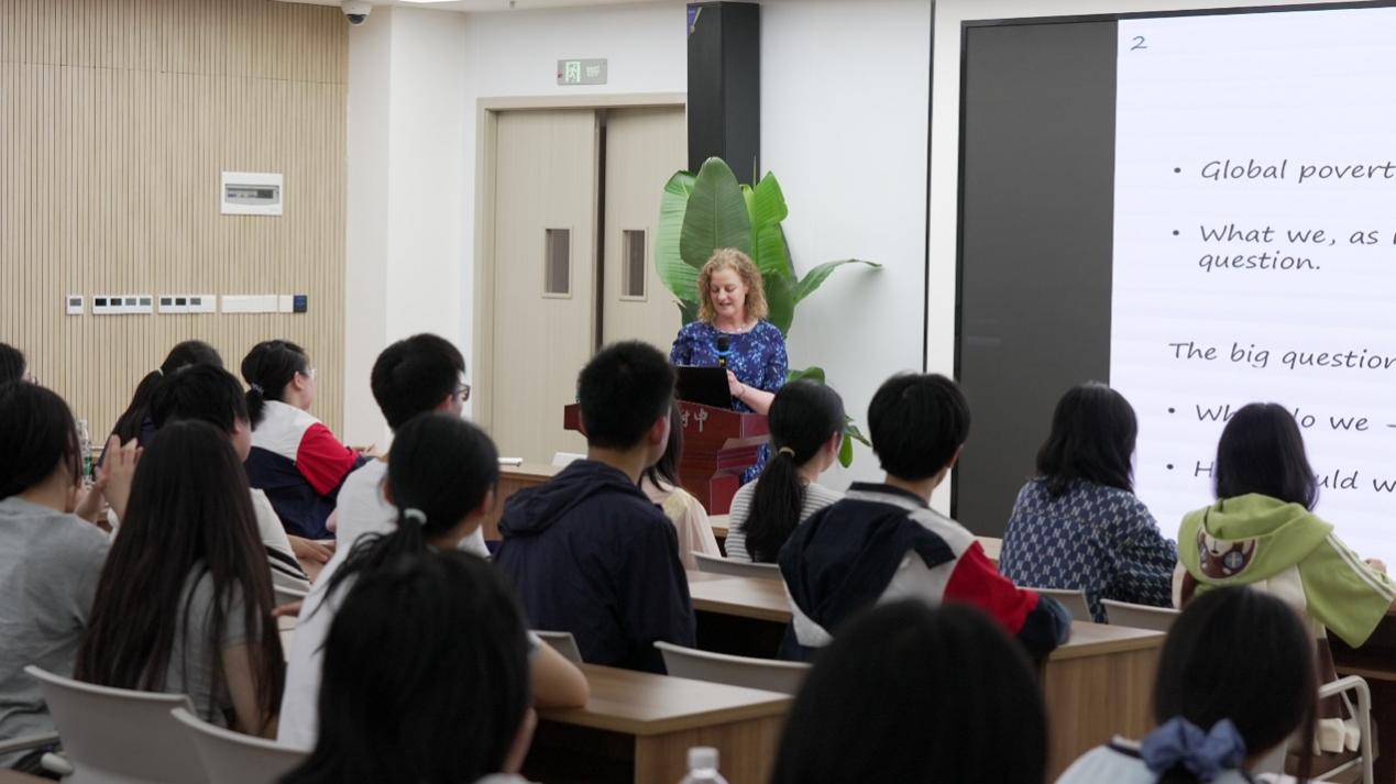 5月29日,牛津大学哲学博士、英国圣安德鲁斯大学高级讲师Elizabeth Ashford受邀到访PA视讯附属中学,在积健楼306报告厅带来题为“全球正义”(Global Justice)的专题讲座。Ashford博士长期从事道德哲学与政治哲学研究。本次讲座中,她以全球贫困、历史根源与气候危机为切入点,深入探讨正义的效用,既富理性洞察,又不失人文关怀,启发在座师生重新审视正义的内涵与实践,并深化对道德与责任的理解。
